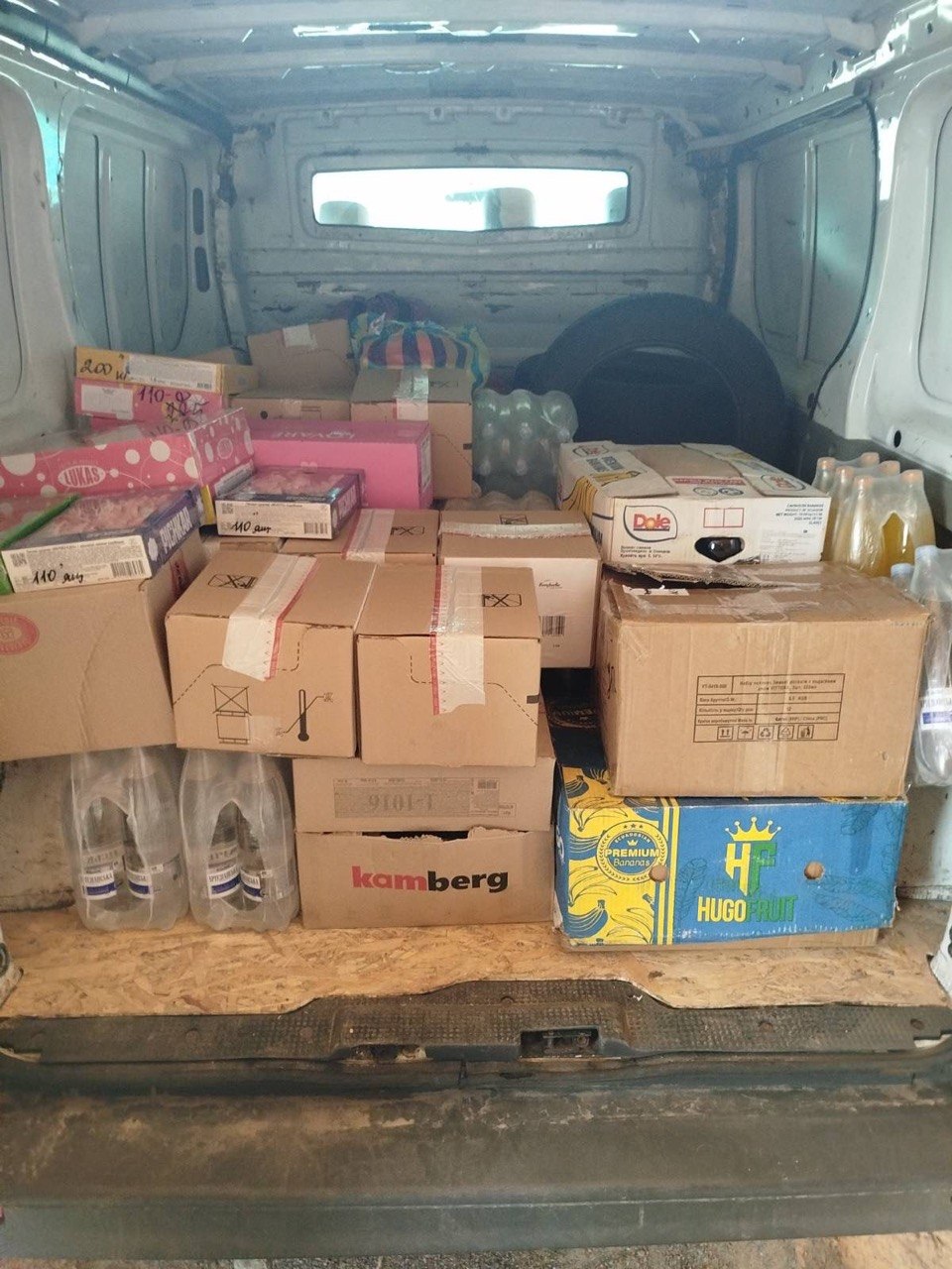 Спільними зусиллями, цього разу, хмільничани передали захисникам продукти, вирощені на власних городах і в садах, домашні смаколики, сало, цукерки, газові балончики, шини та інші необхідні речі, які щодня допомагають військовим тримати оборону.