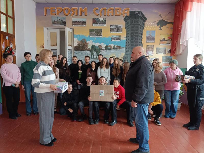 Директорка третьої школи Галина Коведа передала зібрані речі волонтерові, а разом із ними і 24 000 гривень, які вдалося зібрати завдяки небайдужості учнів, батьків, працівників ліцею та інспектора сектору СОБ.