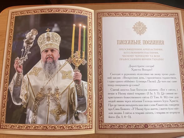 Сьогодні, в світлий день Христового воскресіння, протоієрей, благочинний Вінницько-Тульчинської єпархії Хмільницького благочиння отець Іван Пукас з благословення блаженнійшого Митрополита Київського і всієї України Епіфанія передав Пасхальне послання та привітання з нагоди Великодня начальнику Хмільницької РВА Богдану Кузнецу, - повідомляє Хмільницька районна військова адміністрація.