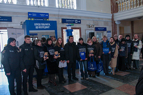 Інсталяція протягом тижня працюватиме на залізничному вокзалі. Вона допомагає відвідувачам розпізнавати небезпечні ситуації та зрозуміти, куди звертатися по допомогу.