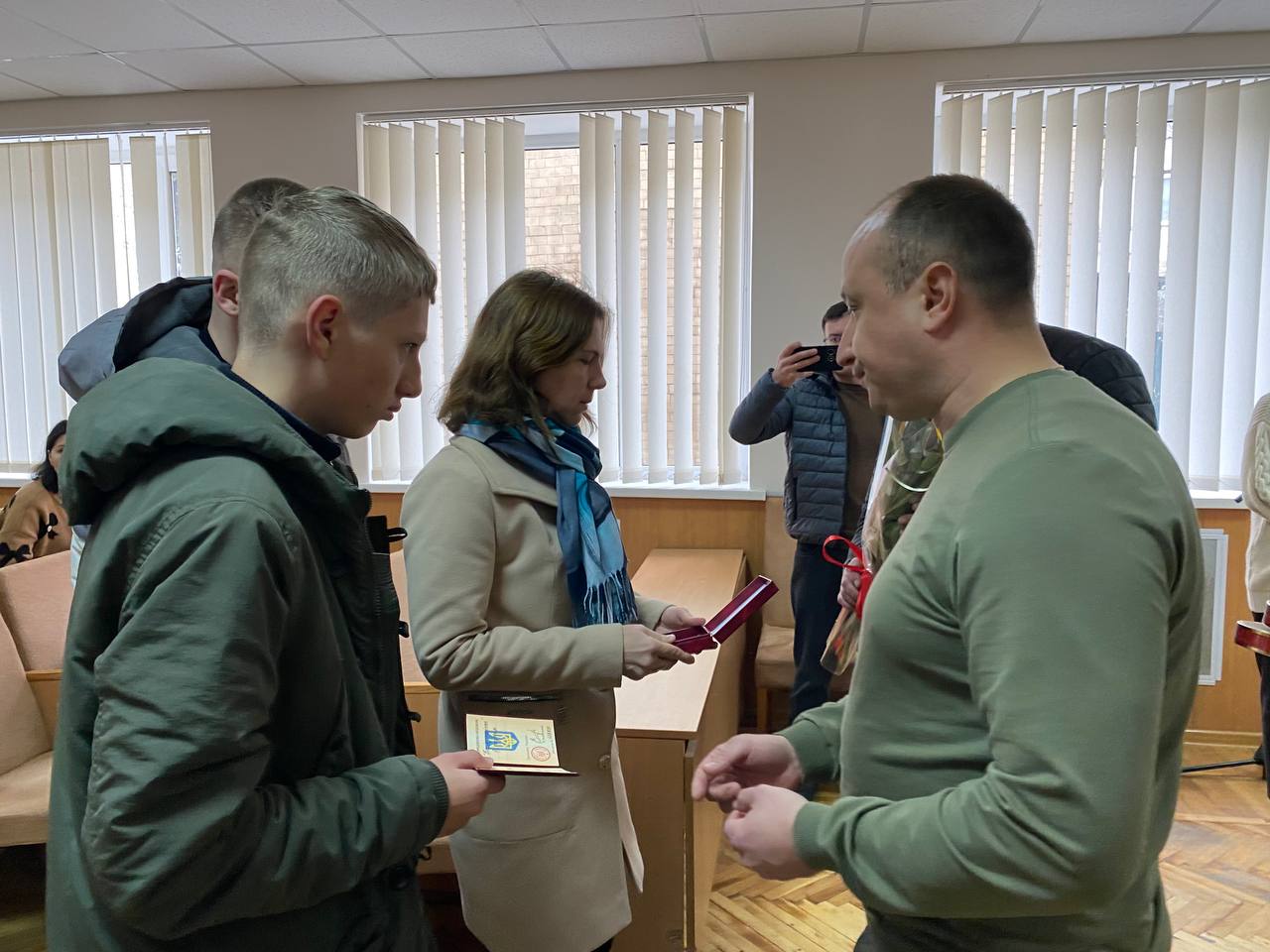 Нагороди родинам полеглих Героїв вручили начальник Хмільницької районної військової адміністрації Богдан Кузнец, голова Хмільницької районної ради Юрій Слабчук та т.в.о начальника Хмільницького РТЦК та СП Сергій Бенедичук.