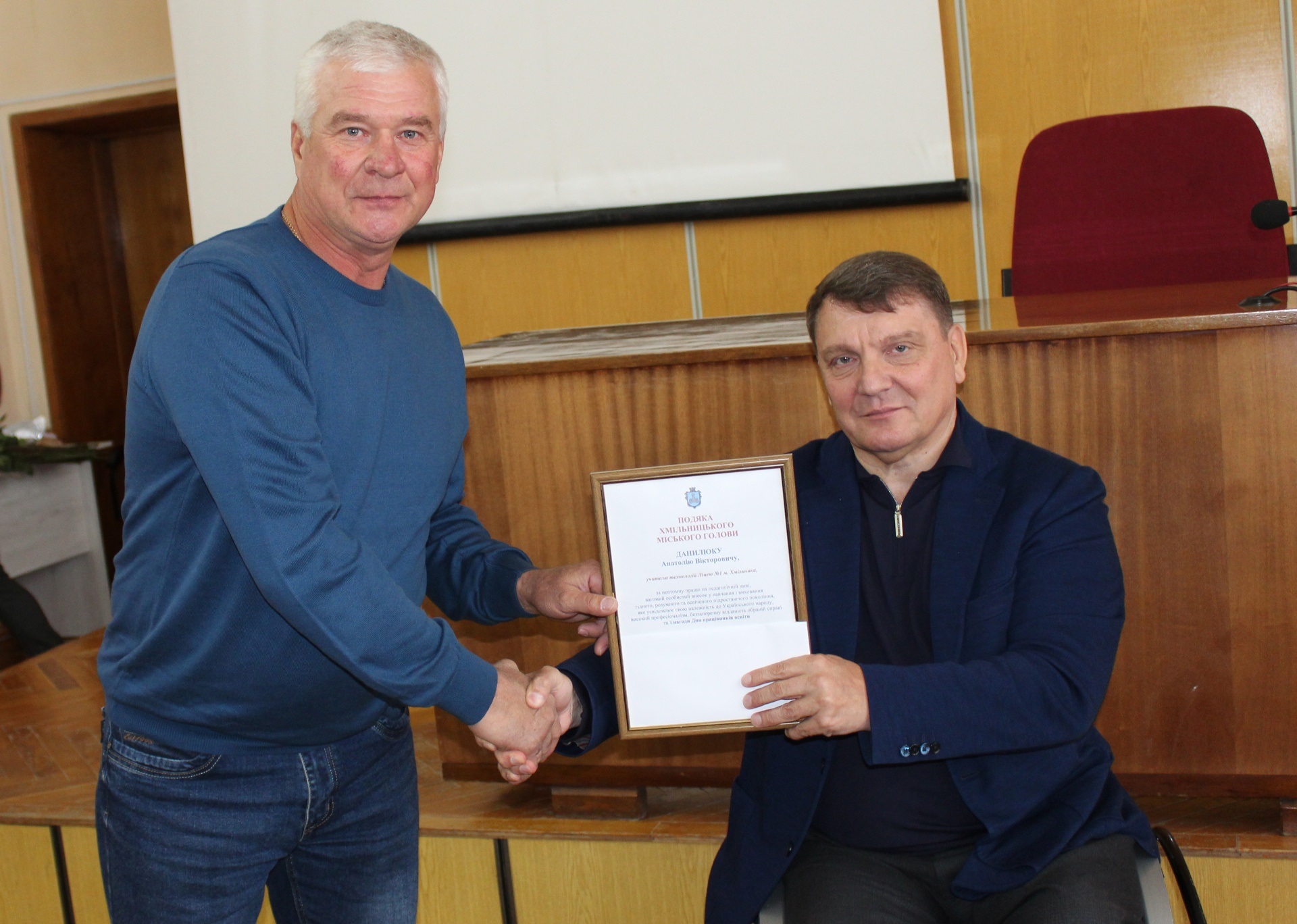 Привітав колег і начальник Управління освіти, молоді та спорту Хмільницької міської ради Віталій Оліх, відзначивши високий рівень професійної майстерності педагогів громади, їх креативність, наполегливість і стійкість у час воєнних випробувань.