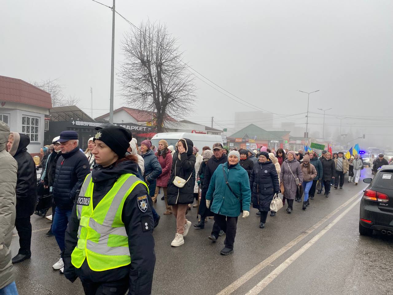 У заході взяли участь представники міської та районної влади, депутати, працівники підприємств, установ та організацій, а також активні мешканці громади. Вишикувавшись у колону, учасники народного єднання вирушили до меморіалу Героям Небесної Сотні.