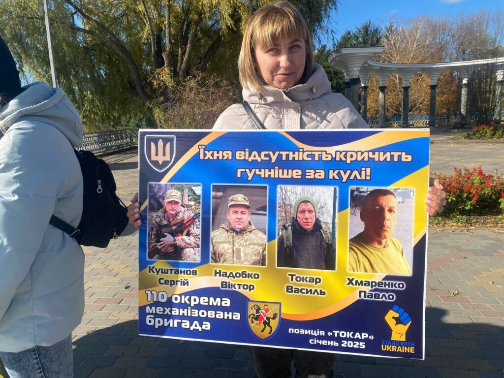 З українськими прапорами, плакатами й фотографіями своїх рідних люди стояли пліч-о-пліч, тримаючи у серцях біль і віру. На плакатах — слова, які стискають горло: «Поверніть мого тата», «Ми чекаємо тебе вдома».