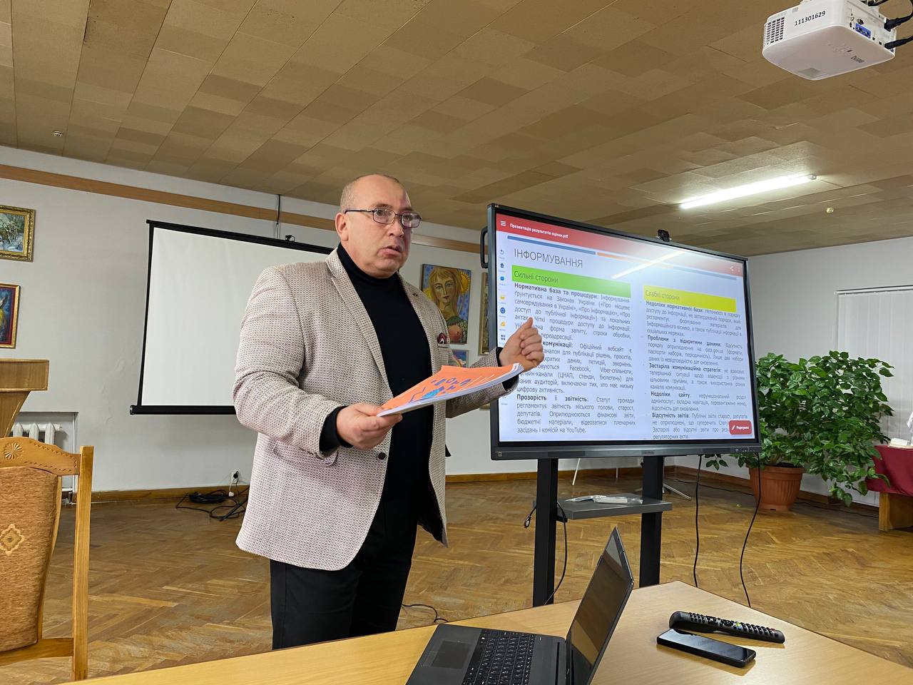 Керівник громадської організації «ПРАВО» Віталій Дорох презентував результати дослідження. Він розповів про застосовану методологію, продемонстрував підсумкові бали, а також навів приклади сильних сторін і проблемних моментів у практиках взаємодії між владою та громадськістю.
