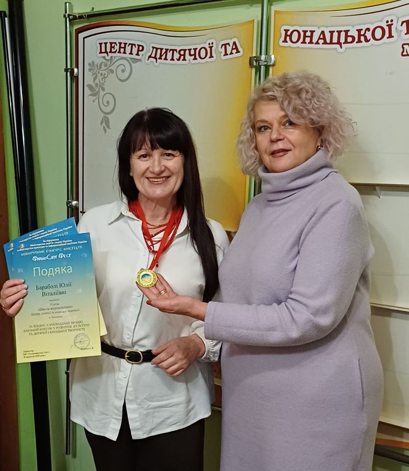 Директорка закладу Наталія Луценко вручила переможцям їх нагороди, привітала з успішним дебютом на Міжнародному рівні та побажала нових творчих проєктів та перемог.