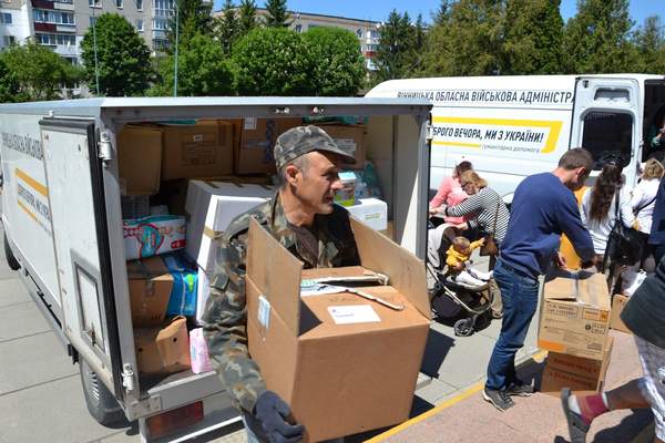 Загалом з волонтерського штабу Вінницької обласної військової адміністрації було передано близько 6 тонн вантажу, який був сформований під потреби переселенців, що тимчасово проживають на території Хмільницької громади.