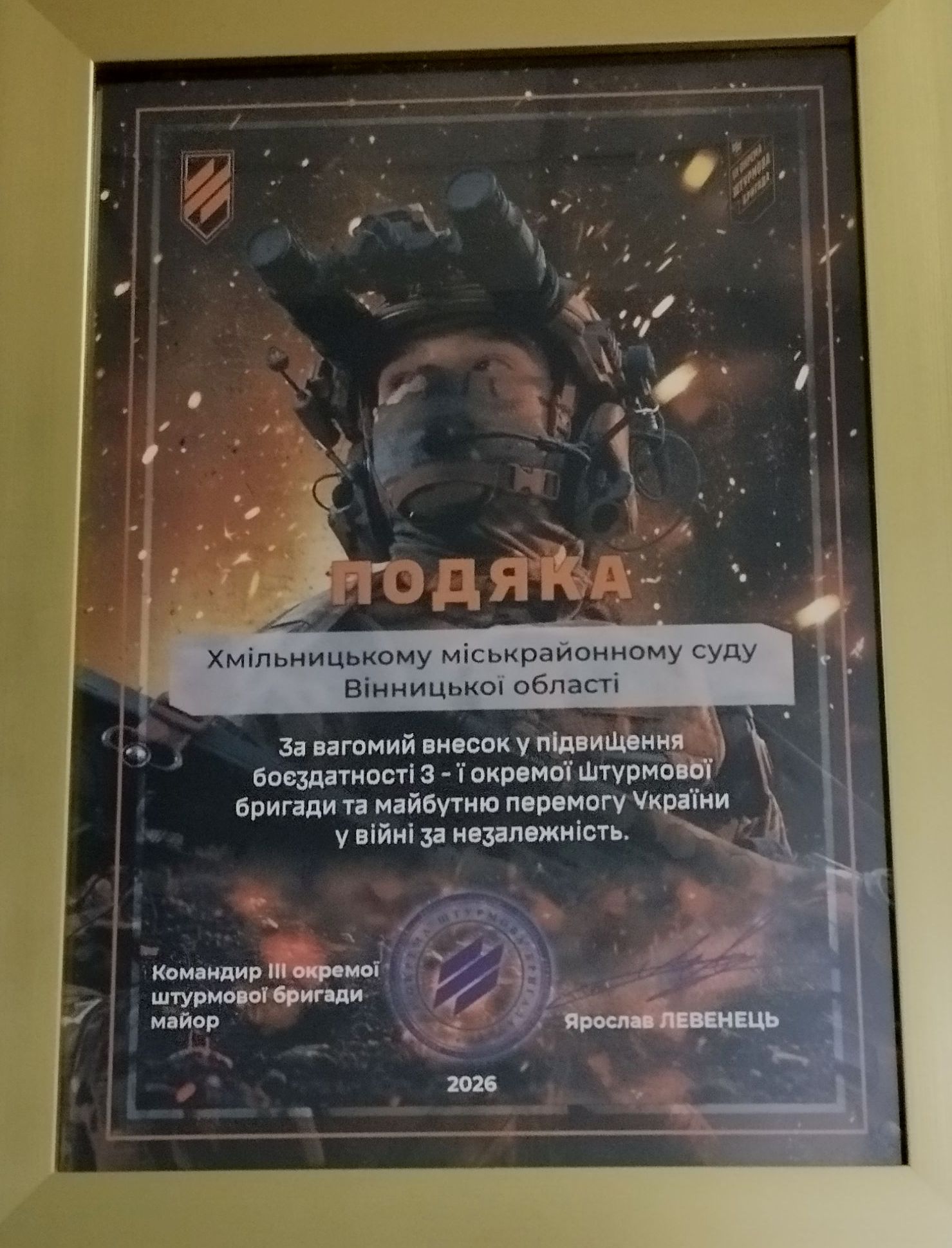 Вчора до Хмільницького міськрайонного суду завітали військовослужбовці Третього армійського корпусу, які вручили колективу Подяку. Захисники України подякували колективу суду за внесок у підвищення боєздатності підрозділу, за стійку патріотичну позицію та надану підтримку військовим.