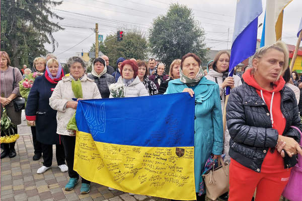 Вишикувавшись у колону, центральною вулицею міста, люди вирушили до Скверу Небесної Сотні, де відбулося народне віче. В сквері звучав гімн України, молитва за здоров'я всіх захисників та захисниць України. Хвилиною мовчання, яку супроводжував тужливий дзвін дзвіночка в руках маленької дівчинки, батько якої віддав своє життя за нашу свободу, присутні вшанували пам'ять про всіх полеглих воїнів, які віддали своє життя за волю і незалежність України. Завершився захід покладанням квітів до пам' ятних знаків полеглих воїнів-земляків.