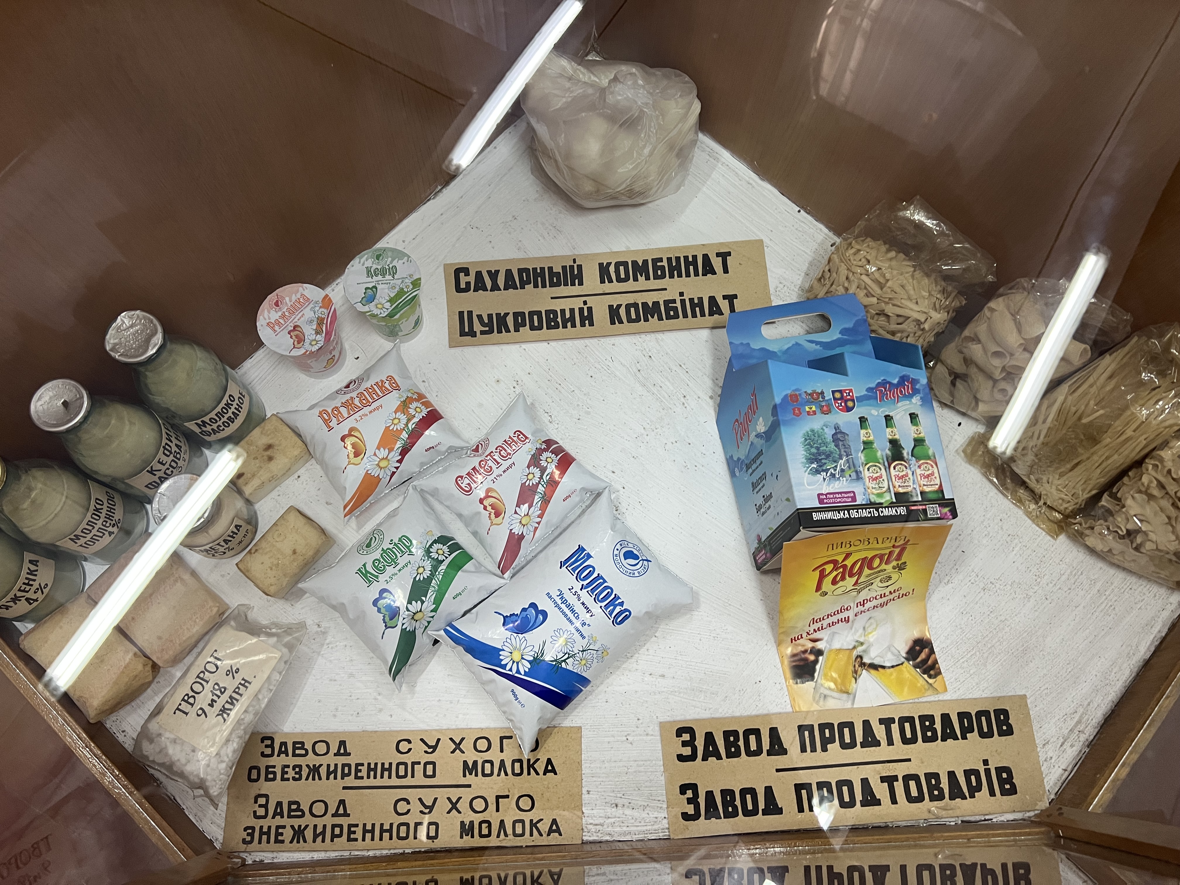Особливу увагу привертають археологічні знахідки - старовинні предмети побуту: горнятка,тарілки, кварти, перші праски, дошки для прання, ручні пружині ваги, макогони тощо. Промислові виробництва такі як: швейна фабрика, завод сухого обезжиренного молока, цукровий комбінат, завод продтоварів, машзавод, мебльова фабрика та інше. Вони свідчать про життя людей на цих землях багато століть тому. Кожен експонат - це частинка минулого, матеріальний доказ історії, яку творили люди: будували міста, займалися скотарством, ремеслами та торгівлею.