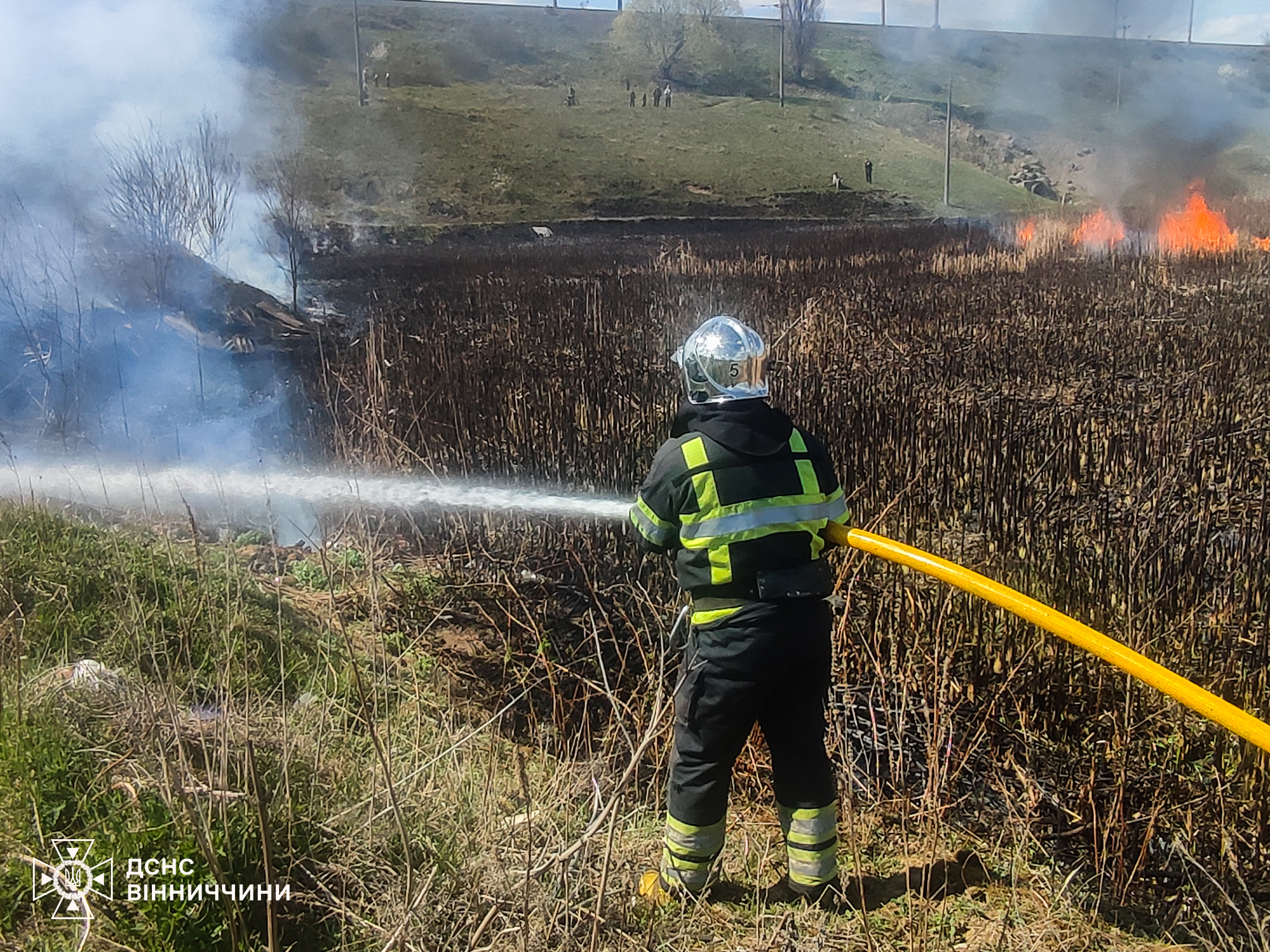 Рятувальники ліквідували загоряння на відкритій території у Хмільницькій, Вінницькій, Жмеринській, Гайсинській громадах та у Вінниці на площі 5 гектарів.