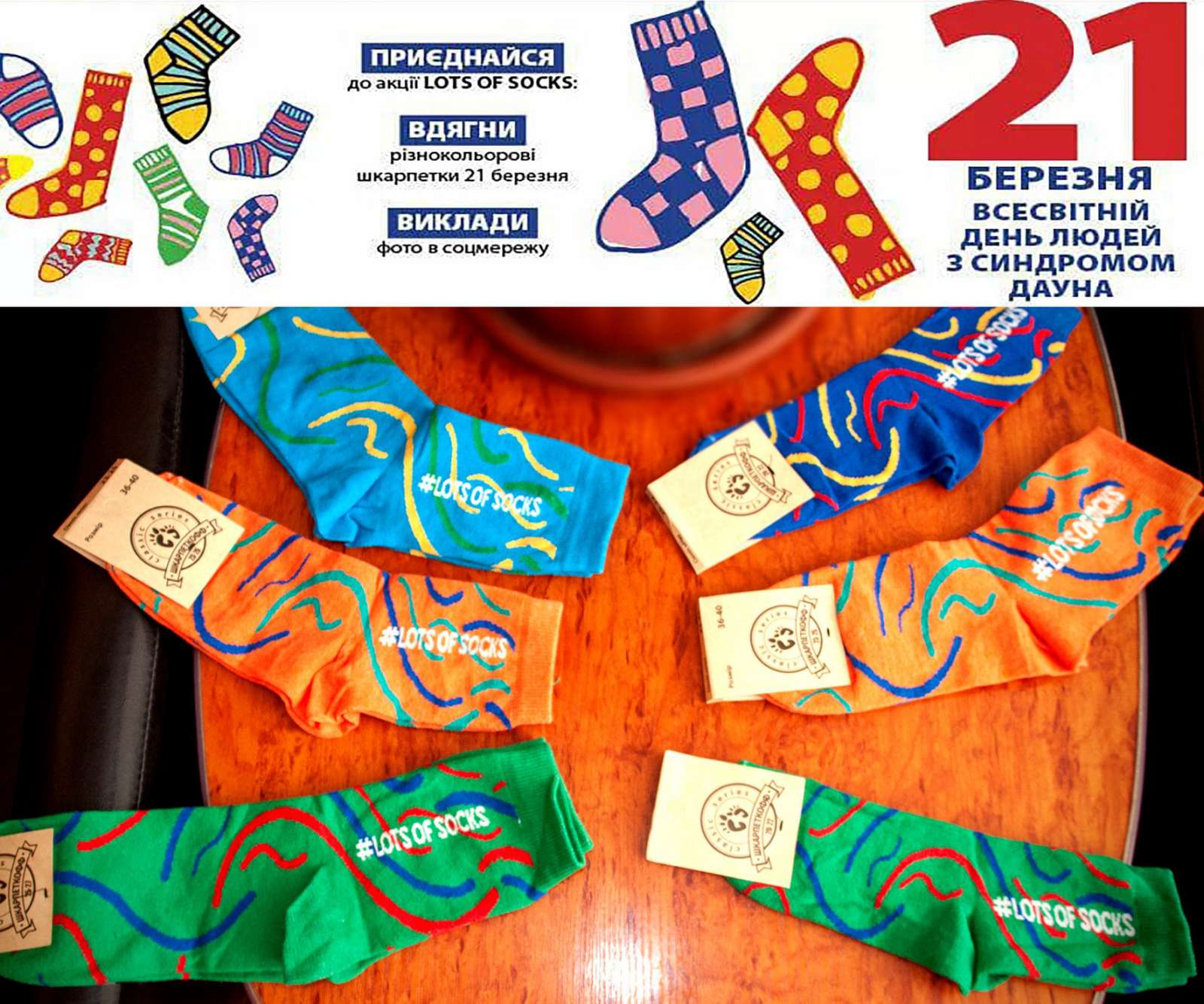 З метою привернення уваги суспільства до проблем людей з синдромом Дауна Міжнародна організація Down Syndrome International ініціювала акцію «Lots of Socks», яка в Україні отримала назву #Шкарпетуйся. Суть акції полягає в тому, що люди які виражають толерантність і підтримку до людей із синдром Дауна, одягають різнокольорові шкарпетки і викладають свої фото у соцмережу з хештегом #LotsofSocks або #Шкарпетуйся. Чому шкарпетки? Ця традиція виникла тому що реакція суспільства на людей, які одягають яскраві, різнокольорові шкарпетки схожа на ту, яку в більшості викликають люди з синдромом Дауна. Саме тому, одягнувши такі шкарпетки, ви демонструєте солідарність та власну готовність поширювати довкола себе інформацію про синдром Дауна.