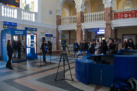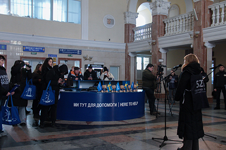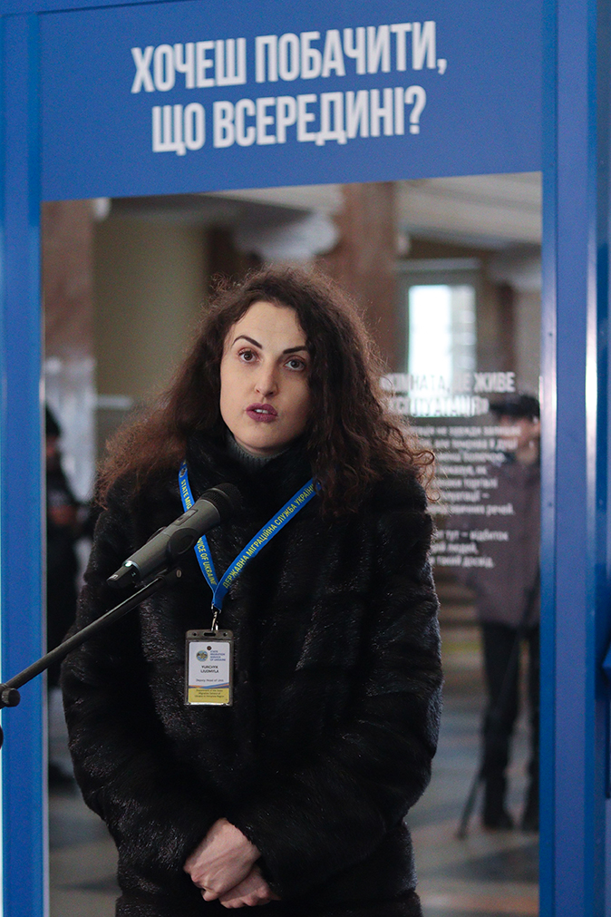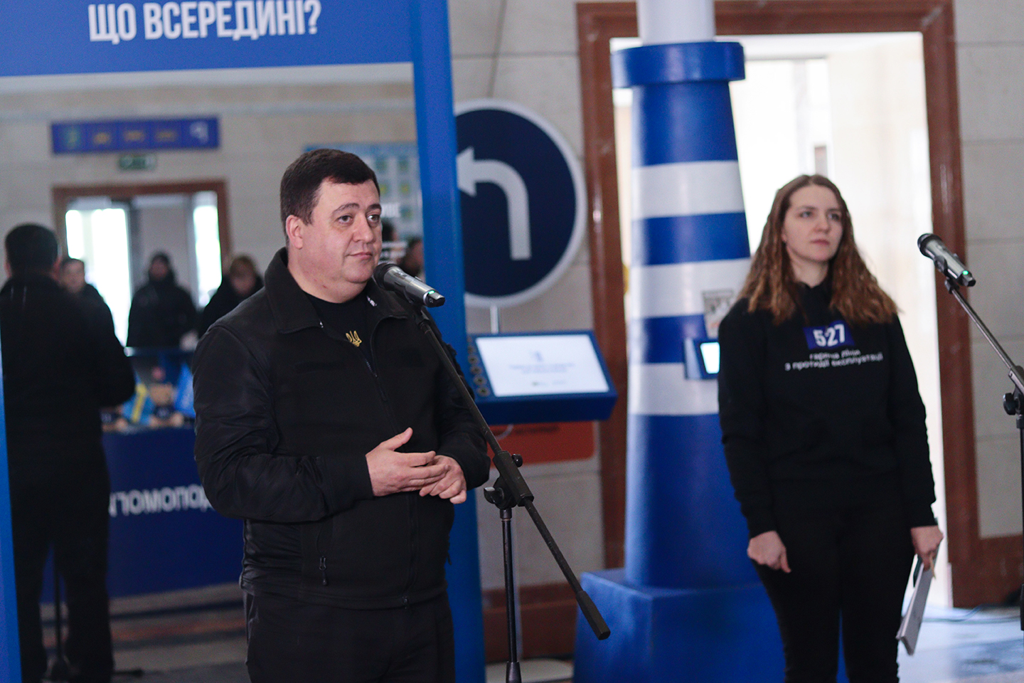 Інсталяція протягом тижня працюватиме на залізничному вокзалі. Вона допомагає відвідувачам розпізнавати небезпечні ситуації та зрозуміти, куди звертатися по допомогу.