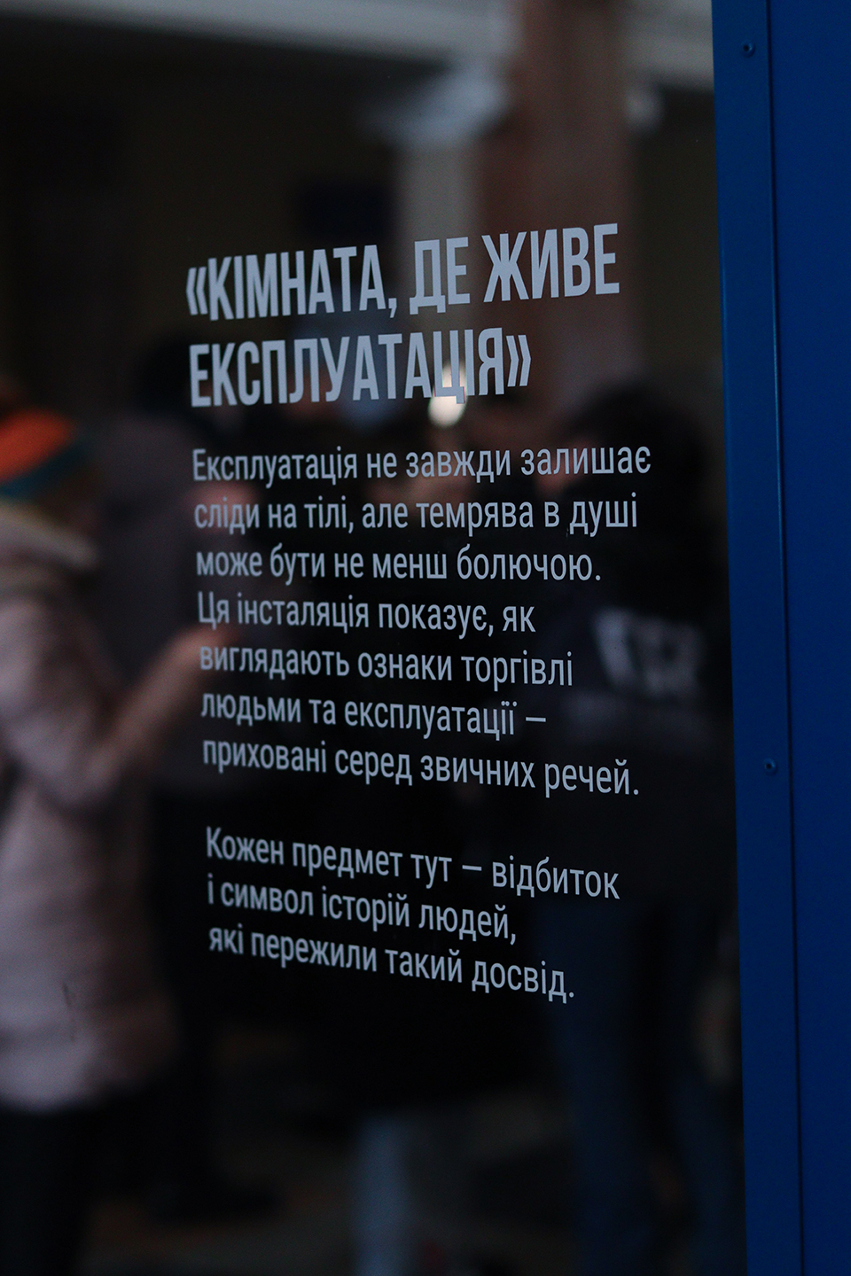 «Сьогодні, в умовах війни, ризики торгівлі людьми зросли, і наш обов’язок — не лише реагувати на злочини, а й попереджати їх. Саме тому такі ініціативи, як “Кімната, де живе експлуатація”, є надзвичайно важливими для захисту людей і їхньої гідності», — наголосив заступник начальника Вінницької ОВА під час відкриття інсталяції Андрій Кавунець.