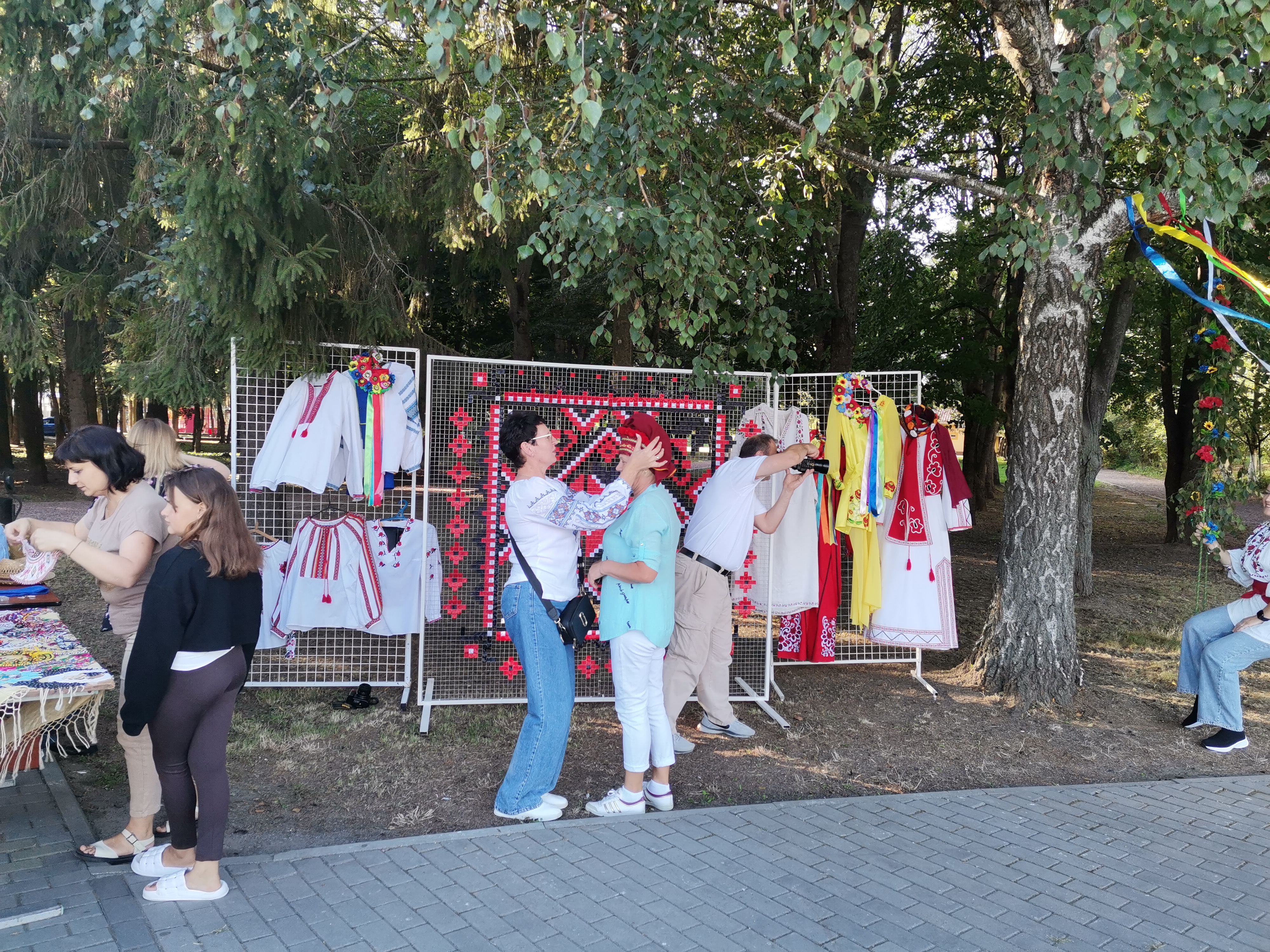 Локація, де можна було сфотографуватись, виглядала різноманітною. Організатори змайстрували гойдалку, прикрашену квітами та стрічками. Також зробити фото можна було на фоні великого яскравого орнаменту. Хмільничани приміряли різне українське вбрання і охоче позували у ньому для великої кількості фотографій, які робив професійний фотограф. Прийняти участь у такому заході можна було за донат для нашої армії.