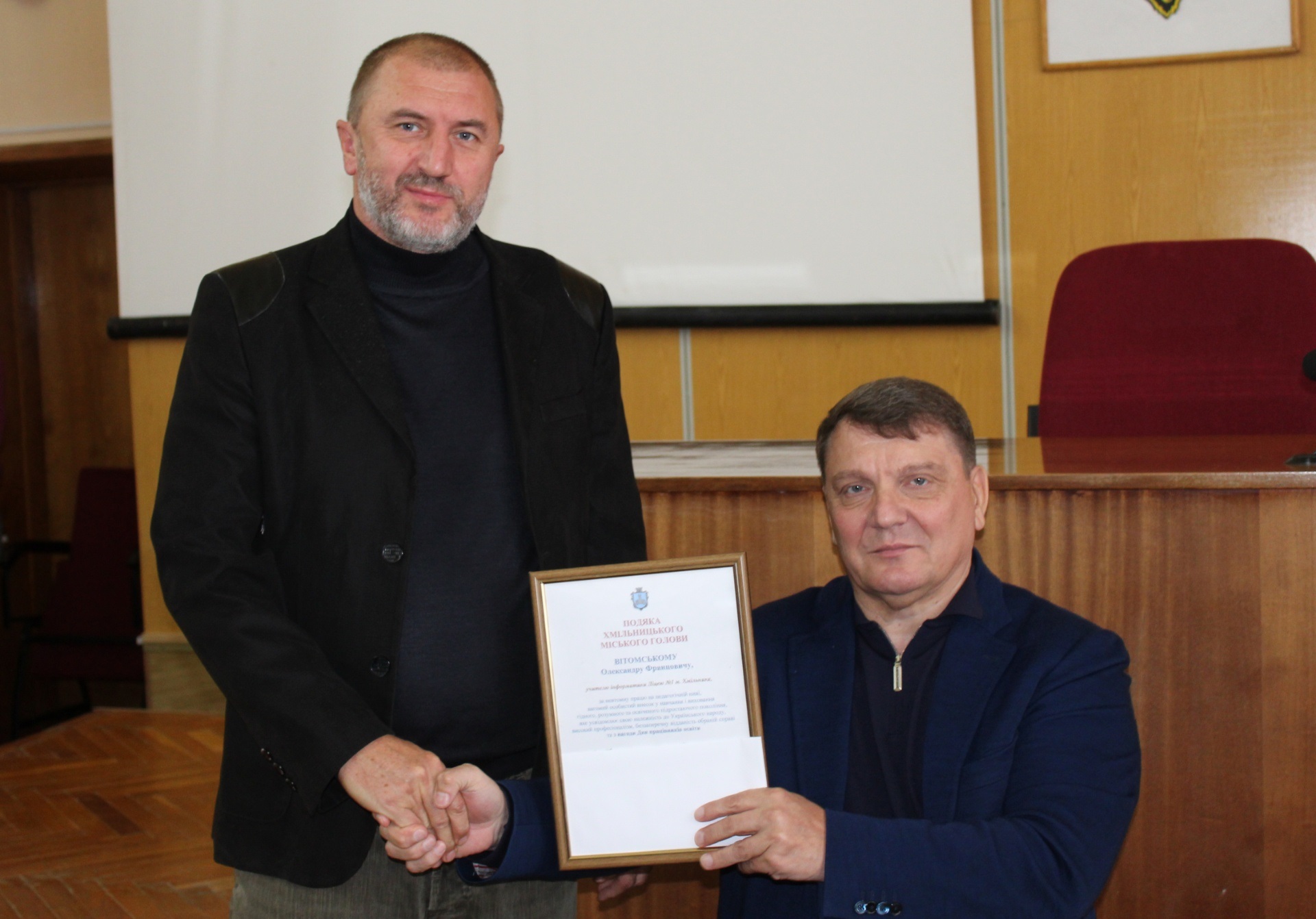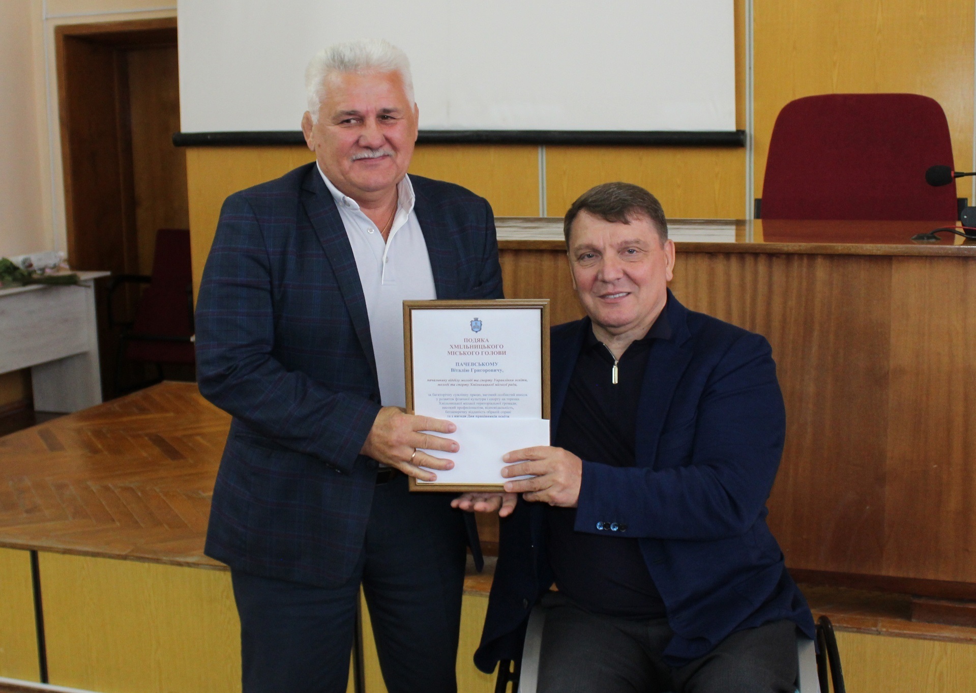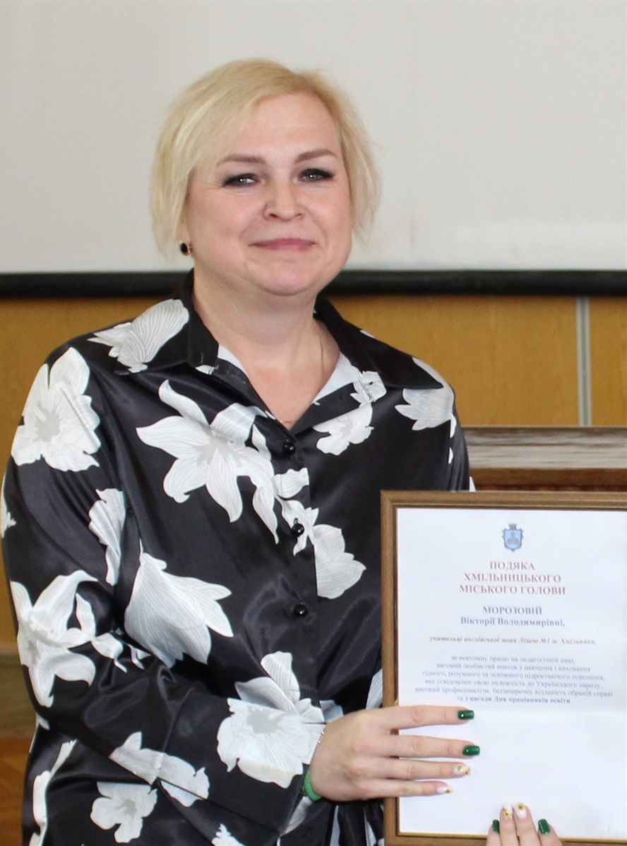Привітав колег і начальник Управління освіти, молоді та спорту Хмільницької міської ради Віталій Оліх, відзначивши високий рівень професійної майстерності педагогів громади, їх креативність, наполегливість і стійкість у час воєнних випробувань.