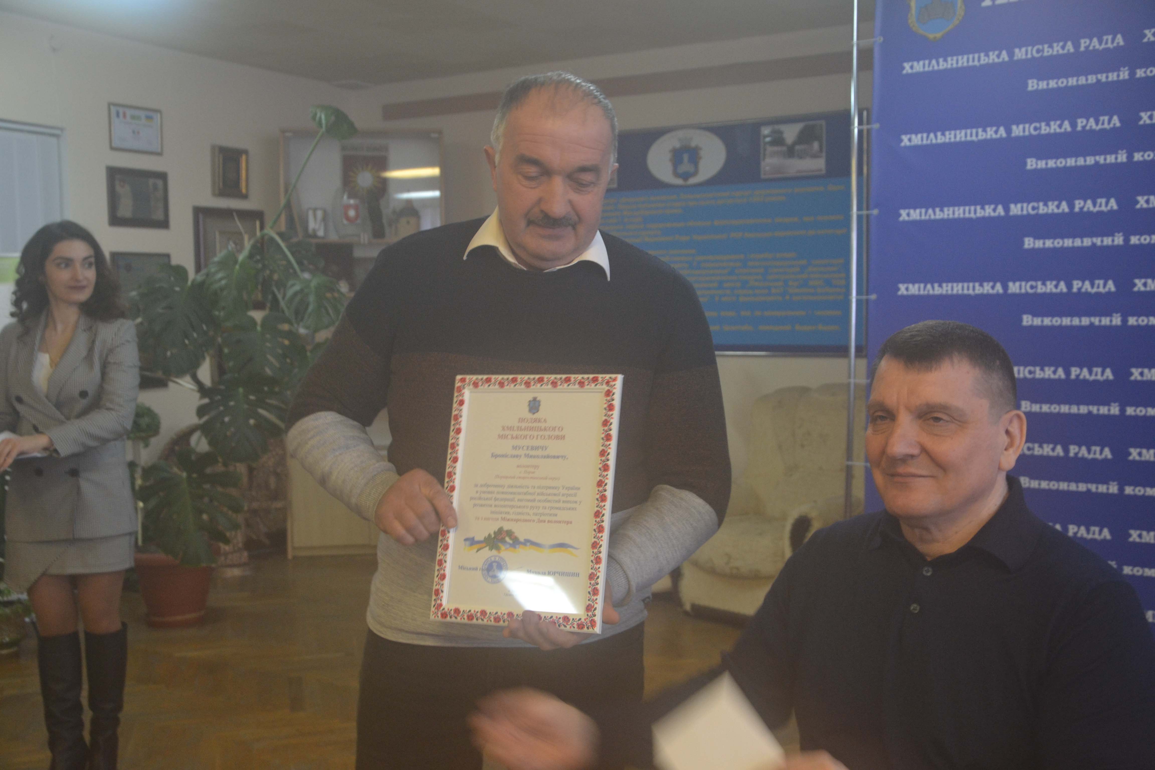 Сьогодні в Хмільницькій міській раді відбулось засідання Волонтерської ради. В ході засідання міський голова Микола Юрчишин привітав волонтерів Хмільника зі святом, подякував їм за жертовність і велику роботу для перемоги над окупантами та вручив Подяки, хмільничанам котрі з перших днів війни, присвятили себе волонтерству.