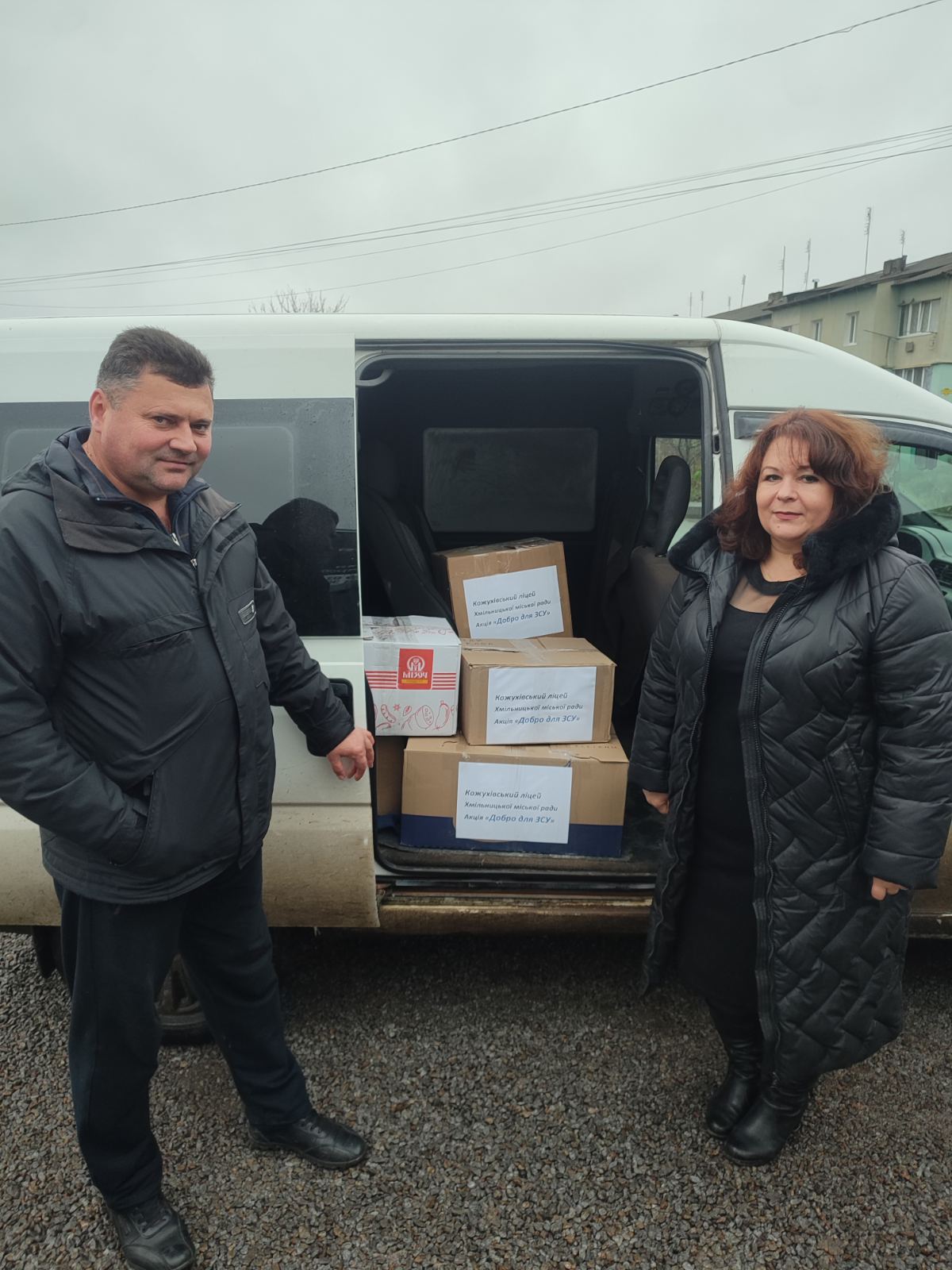 Після завершення збору було прийнято рішення передати всі зібрані речі волонтеру Івану Плотиці, для доставки нашим захисникам на фронт.