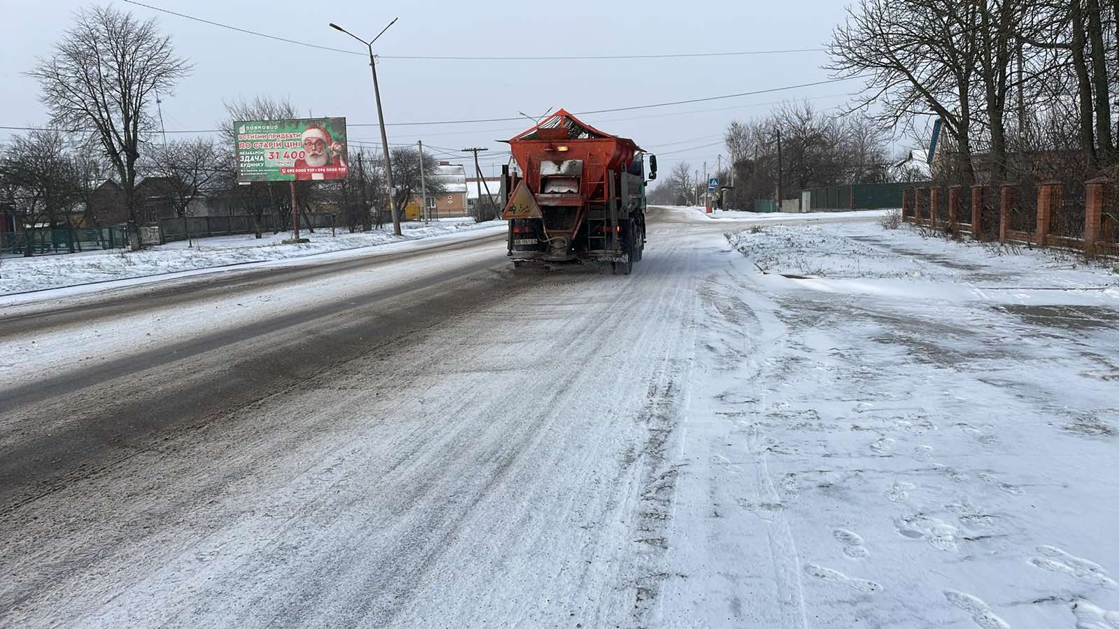 Комунальники здійснюють посипання автомобільних доріг, у тому числі трас і між населеними пунктами, піщано-сольовою сумішшю. Основна мета таких заходів — зменшення ризику аварійних ситуацій та забезпечення безпеки дорожнього руху в зимових умовах.