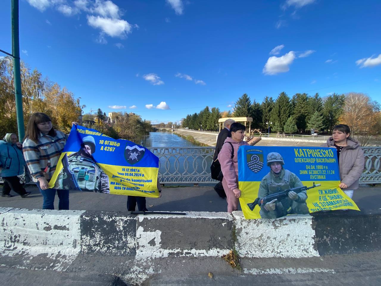 З українськими прапорами, плакатами й фотографіями своїх рідних люди стояли пліч-о-пліч, тримаючи у серцях біль і віру. На плакатах — слова, які стискають горло: «Поверніть мого тата», «Ми чекаємо тебе вдома».