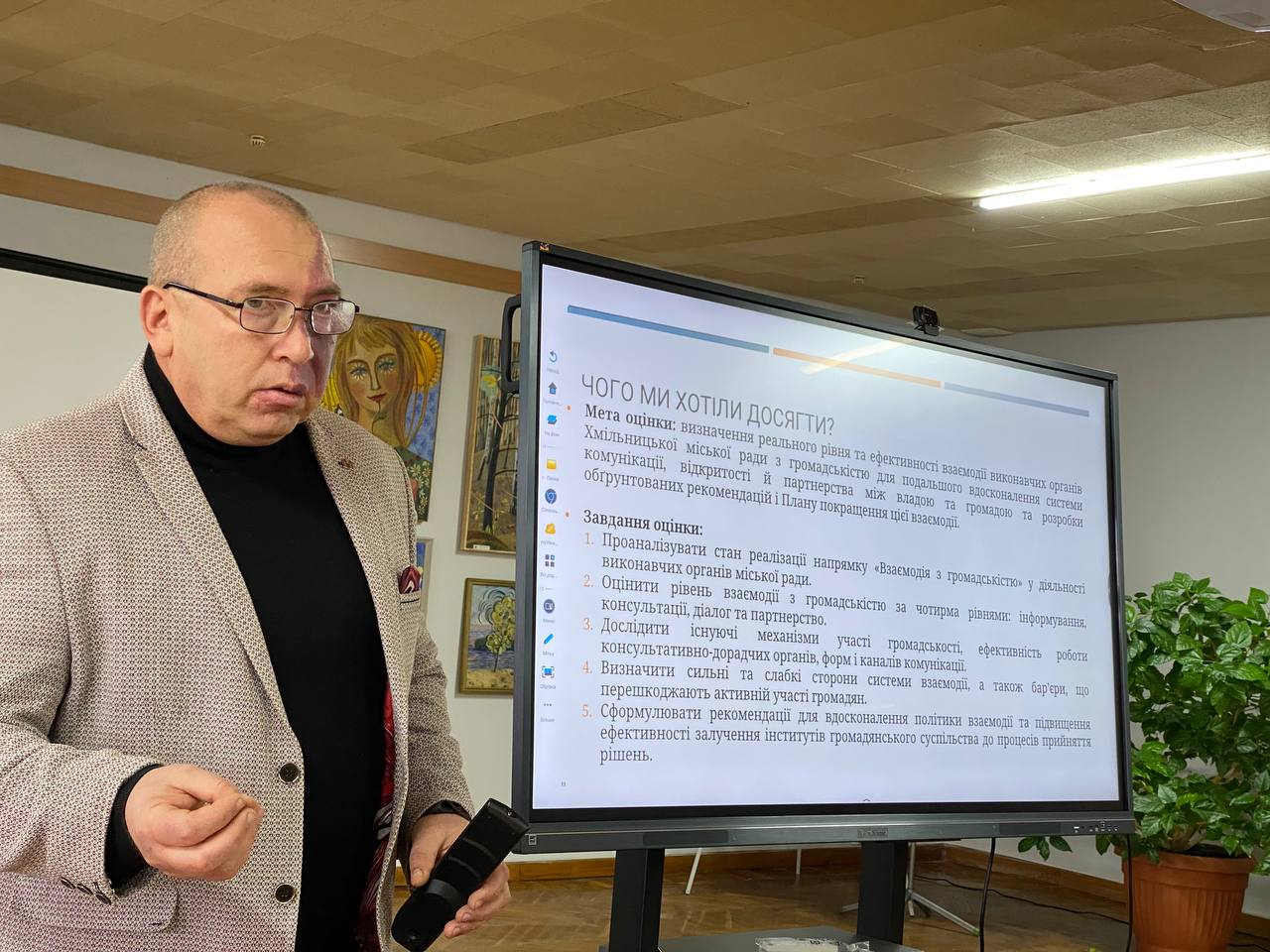 У п’ятницю, 7 листопада, у конференц-залі Хмільницької міської ради відбулася презентація аналітичного звіту в рамках проєкту «Громадянське суспільство: курс на зміни». Захід об’єднав представників місцевої влади, громадських організацій, журналістів, активних мешканців громади, які ознайомилися з результатами оцінки діяльності виконавчих органів Хмільницької міської ради за напрямом «Взаємодія з громадськістю».