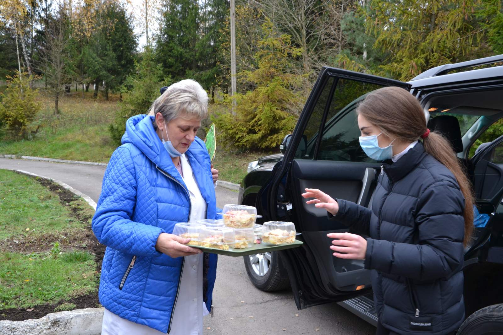 Таку акцію на підтримку хмільницьких медиків влаштувала юна хмільничанка, учениця 11 класу четвертої міської школи Катерина Грушко. Вона разом зі своєю мамою спекли великий торт «Наполеон», поділили його на шматки, а тоді Катерина відвезла торт до лікарні та пригостила ним медпрацівників.